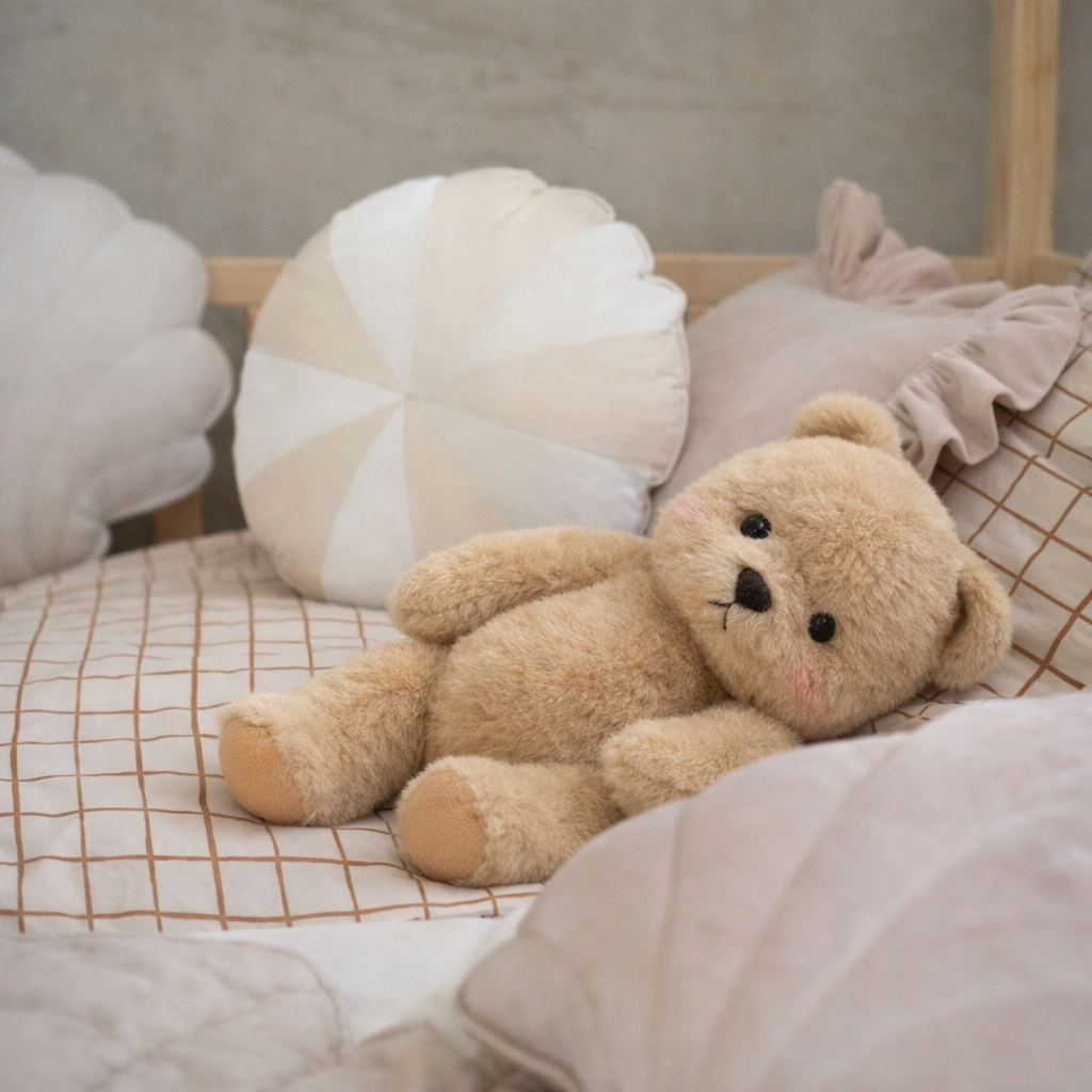Miękki plusz, delikatna forma i spokojny wygląd sprawiają, że miś daje poczucie bliskości. Przytulony przed snem pomaga się uspokoić, wyciszyć po całym dniu i poczuć komfort, który sprzyja odpoczynkowi. To mały towarzysz wieczornych chwil, który daje spokój i ciepło. Dzięki temu naprawdę ułatwia zasypianie.